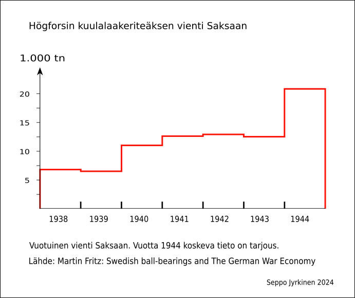 Kuulalaakereiden ja kuulalaakerikelpoisen malmin (jota oli vain osa kaikesta malmista) toimitukset Saksaan kasvoivat vuosittain läpi sodan aina vuoteen 1943/44 asti. Sodan loppuvaiheessa laakeriviennin aleneminen kompensoitiin laakeriteräksen ja laakerikoneiden viennillä. Samanaikaisesti laakereiden toimitukset länteen kutistuivat olemattomiin.