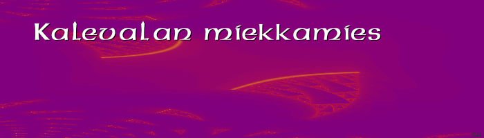 Kalevala kirja netissä![]() Jakso 7 - Jo kohta perille PohjolaanParin Päiväläisen kierron jälkeen, syvällä Pohjolan mailla, Lemminkäinen näki veden pinnan siintävän puiden lomasta. Lähemmäs päästyään hän totesi sen kovin tummaksi, aivan mustanpuhuvaksi. Se oli Tuonelan joki. Avautui virta leveänä aivan kulkijan reitin varressa. Toisella puolen tummaa vettä saattoi nähdä ankeannäköistä metsää matalien rantakallioiden takana. Kituliaan oloisia, harmaita puita, oudon näköisiä. Vaan minkäänlaista elämää ei näkynyt virran sillä puolen. Taivaalta kuului kuului korpin raakkuva ääni linnun lentäessä joen poikki Tuonelan maille. Liekö vienyt mukanaan ihmissielun? Vain kaistale tummaa virtaa, ja sitten alkoi ihmiseltä kielletty maa, lausahti Lemminkäisen ääneti mielessään ja käänsi päänsä poispäin. Kovin kalseanoloinen oli tuo äänetön joki. Ei hän Tuonelan maata pelännyt, mutta ei siitä pitänytkään. Olivat päivät jo lyhyehköiksi käyneet ja yöt kovin pimeitä. Maa punersi kaikkialla Pohjolassa ja koivut kävivät kilpaa keskenään, ken olisi väreissä kaikkein loistokkain. Vaan oli osa jo lehvistään luopunut ja ruipeloina rankoina seisoivat, kuin talven edessä olisivat ennen aikojaan alistuneet. Kylmä ilma alkoi pyyhkiä miehen kasvoja. Joko se talvi teki tulojaan, näin varhain? Eikä aikaakaan kun jo suuret hiutaleet tulivat alas taivaalta keveästi leijuen, kuin epäröiden, että tohtisivatko lainkaan maan tummalle kamaralle laskeutua. Ne olivat ensilumen hiutaleita, jotka olivat vain tulleet kertomaan metsälle, että Pohjolassa oli syksy vaihtumassa aikaiseksi talveksi. Kertoivat luonnolle, että vielä oli hetken aikaa valmistautua siihen, mitä tulossa oli. Ehtisivät kasvit ja metsän eläimet suojautua pian päälle tunkevaa, kaiken tappavaa kylmyyttä ja pimeyttä vastaan. Ja talven selän keskellä, sen kylmimpään aikaan, olisi Päiväläinenkin kokonaisen kuunkierron piilossa pakkaselta ja tuiskulta. Minne sekin mahtoi mennä lymyämään? Tuli lunta taivaalta, sakeni ajoittain läpitunkemattomaksi hiutaleiden virmellykseksi kadotakseen yhtä äkisti kuin oli alkanutkin. Vielä oli maa lämmin kesän jäljiltä ja lumi suli samantien jättäen jälkeensä pieniä lammikoita ja kosteita kiviä jotka Päiväläinen ja lempeä tuuli pian kuivasivat. Hieman piti Lemminkäiseen ihan silmiään terästää. Oliko tuolla kauempana puiden takana ihmisen asumus vai mikä? Melkoisen lähellä virtaa oli jotakin, joka näytti kuin kasaan painuneelta saunarakennukselta. Vaan kuka nyt Tuonelan virran äärellä saunoisi ja Tuonelan virrassa itseään vilvoittelisi! Ei ainakaan ihmisen lapsi! ![]() Polku kaartui poispäin joesta ja outo rakennus jäi hevostaan hoputtavan Lemminkäisen selän taakse. Vihne juoksi joutuisasti mutkaisaa polkua ja ennen iltaa matkalainen saapui harvapuustoisen kukkulan laelle. Sieltä Lemminkäinen katseli laaksoon, joka pilkahteli kaukana puunrunkojen lomasta. Pohjolan akan kylä. Siellä se oli, laakean laakson pohjalla, aivan lähellä merta. Ja korviaan höristäen saattoi Lemminkäinen kuulla Rutjan kosken vaimeasti kohisevan jossain laakson toisella puolen näkymättömissä, sankan metsän keskellä. Vain palasen matkaa taitettuaan Lemminkäinen näki useampiakin kylän taloja jotka kaukaa rinteestä katsoen näyttivät kuin männynkävyiltä ympärillä touhuavine muurahaisineen. Sitten silmä jo tavoitti asumuksen, joka oli monta kertaa muitaan suurempi. Sieltä kylän toiselta reunalta, melkoisen läheltä meren rantaa. Lemminkäinen tiesi Pohjolan akan mahtavaksi, ja taloa oli sanottu linnan kokoiseksi ja sellaiselta se vieraan silmään näyttikin. Talon harja tavoitteli taivasta: hyvinkin viisi miestä saisi seisoa toistensa hartioilla eivätkä vieläkään kurkihirttä tavoittaisi. Olivat Kalevalan kylillä kertoneet, jotta olisi ylväs Pohjolan linna ikiaikaisista aihkihirsistä tehty. Ei ollut Lemminkäinen konsaan moista nähnyt. "Jopa on akalla asumus!" ihmetteli Lemminkäinen ääneen itsekseen. "Jos on varaa tuollaiseen, niin kai sillä on piikoja minun ilokseni." Mies halusi yllättää Pohjolan väen ja sisälle olisi siksi päästävä varkain. Varovasti kalevalainen ajeli lähemmäs, asumuksia vältellen. Löysi tiensä syrjäisen notkelman pohjalle josta ohjasti hevosen äänettömästi puiden lomasta kylää kohti, ohi muutamien harmaiden talojen. Ajoi pitkin tiheän kuusiaidan viertä aina lähelle suurta, avointa porttia. Hetken hän oli liikkumatta paikoillaan kunnes tunsi itsensä valmiiksi Pohjolan akan taloon mennäkseen. Siihen jätti hevosensa ja rekensä. Heti aidan sisäpuolella vastaan asteli ankaranoloinen silmäpari. Isokokoisen, mustakarvaisen eläimen suusta tuli töin tuskin kuuluva matala, tukahdutettu murina. Ikenet irvessä se näytteli hampaitaan vieraalle. Se oli Pohjolan akan talonvahti, josta äitikin oli varoittanut. Repisi miehen kuin miehen kappaleiksi, jos joku yrittäisi tupaa lähestyä. Ja se odotti vieraan tulevan lähemmäs. Lemminkäinen alkoi loitsuta, hiljaisella, liki kuiskivalla äänellä. "Sulje Hiisi haukun leuat, kiinnitä sen leukaluu, Samalla hän ruoski maata ruoskallaan ja maa alkoi pöllytä ja pöly kasvoi pieneksi pilveksi. Muuttui ilma sakeaksi ja matkalainen ruoski vielä lisää. Lopulta katosi mies udun sisälle. Murina vaimeni ilman saetessa ja jo kuului pelokas uikahdus joka kertoi Lemminkäiselle, että tie tupaan oli nyt vapaa vieraan kulkea. Mies hiipi hiljaa suuren talon seinustalle. Sisältä kuului ihmisen ääniä, laulamista ja joskus ankaranoloista puhetta. Varovasti hän ikkunan takaa tihrusteli sisälle hämärään tupaan. ![]() Seuraavaksi 8:
