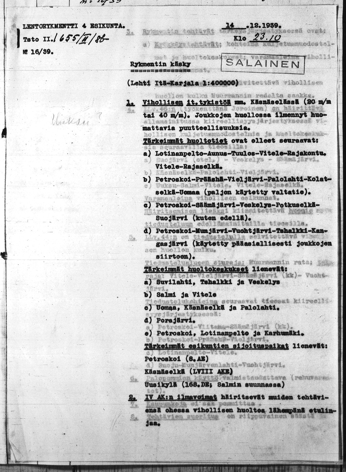 Rykmenttiportaan sivuuttaminen (?) on mahdollisesti johtunut kiireestä; käsky on käsin kirjoitettu. Kyseessä on kuitenkin oikea käsky, ei luonnos, koskapa siinä on kenraali J.F. Lundqvistin omakätinen allekirjoitus.