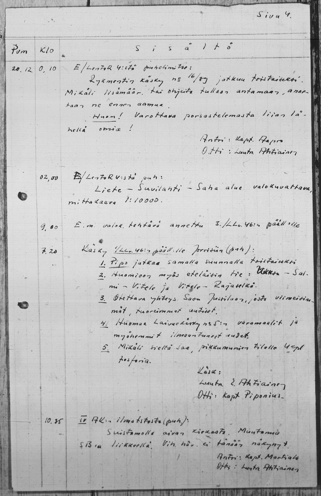 käskynantajan päiväkirjaan (joita on saattanut olla ketjussa useita), sekä