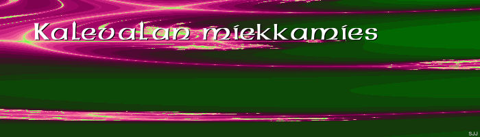 Kalevala - kaunokirjallisuus![]() Jakso 8 - Pohjolan akan tuvassaAvara tupa, ihan oikea sali, oli täynnään ihmisiä.Tusinan verran vanhempia miehiä, saman verran vanhoja akkoja ja oli siellälapsiakin. Tuntijoita, laulajia, soittajia, oppineita, tietäjiä,loitsijoita. Lauloivat Pohjolan runoja, joskus Hiiden virttä vinguttivat. Ne olivat Pohjolan kansan loitsijoita jaturjalaisia, joista äiti oli pojalleen jo vuosia sitten tarinoitakertonut. Oli äiti ne varoituksiksi tarkoittanut, mutta nuoriLemminkäinen oli niistä vain innostunut. Nyt hän oli vihdoin ominsilmin ja korvin niitä kokemassa. Tuvassa joku nousi seisomaan ja loitsuiyksitoikkoisella äänellä. Sai tuopit pirtin pöydällähyppimään tai palavan kalikan ilmassa lentämään. Ihastuneista japelokkaistakin huudahduksista päätellen ne olivat yksinkertaistenkyläläisten silmissä vallan ihmeellisiä asioita. "Vai lennätätte te tuoppeja ja kekäleitä;lasten leikkejä nuo ovat minun voimieni rinnalla!" mutisiLemminkäinen ja itsevarma hymy levisi miehen jämerille kasvoille.Terävät silmänsä tarkastelivat uudemman kerran tuvassa olijoitaja kalevalainen havaitsi, että joukossa ei ollut yhtään sotilasta.Ei ainuttakaan oikeaa urhoa! Pelkkiä sananvääntäjiä; vanhojaukkoja ja rähjäisiä kylän ämmiä laulajaisia pitämässä. Tämäporukka ei hänelle pärjäisi! Kalevalainen tiesi itsensä voittajaksi! Sinkosi ruoskan kädestään sinne, mistä oliviimeksi koiran ääntä kuullut. Pureskelkoon hurtta sitä. Sittenhän harppoi ovelle ja oli jo riuhtaisemassa sitä auki, kun pysähtyihetkeksi. Ihan väkisin pakotti itsensä rauhalliseksi ja vastasitten avasi oven varoen, kolahduksia välttäen. Äänettöminaskelin meni sisälle aikoen väen yllättää. Vaan ei montaaaskelta ehtinyt ottaa, kun jo havahtui laihanoloinen piikavieraaseen. "Mikäs outo kulkija se siinä niin ujosti hiipii?" kysäisi tämä ohuella, kirkkaalla äänellään. ![]() Oven suussa seisoi pieni mies pitkä miekkavyöllään. Pyhäpuvussaan, koreissa liiveissään, komea vaaleatukka hartioilla valtoimenaan. Oli kuin itse kuningas olisi astunutköyhän rahvaan täyttämään saliin. Pohjolan akka, ylen lihava, tummakasvoinen nainen,lyllersi närkästyneen näköisenä huoneen periltä keskellelattiaa tulijaa katsomaan. "Miten sinä tänne pääsit,maankiertäjä." Ja vastausta odottamatta jatkoi omistaepäluuloistaan tuohtuneena: "Minulla on ulkona talonvahti,jonka olen raa'alla lihalla ruokkinut ja omin käsin talonvahdiksikouluttanut. Akka kiihtyi omista sanoistaan ja jatkoientistäkin kiukkuisemmalla äänellä: "Mikä olet sinämiehiäsi, kun olet päässyt tupaani vahdin meteliä nostamatta?Tappanutko sinä olet minun koirani? Sen sinä saat kyllä kalliistimaksaa!" "En ole tullut tänne vahtikoirienhaukuttavaksi enkä susien ulvottavaksi!" vastasi Lemminkäinenitsevarmasti. Hymystään huolimatta häntä loukkasi, että Pohjolanakka ei häntä tuntenut. Lieneekö koskaan kuullutkaan. Piti maankiertolaisena, joka kerkeästi pakenisi kylän koiria. Sen saisi akka pian maksaa! Akkaa tihruisiin silmien katsoen itsevarmuus äänessäänhän lausui: "Olen laulaja Lemminkäinen Kalevalasta ja minullaon matkassa isäni loitsut. Poikana emo pesi minut joka tielletaitajaksi ja muutoinkin mahtavaksi. Taidan laulaa ilmat ja meret jamaan mannutkin. Enkä ole vertaistani vielä tavannut!" Muutamanaskeleen peremmälle ottaen hän antoi tuiman katseensa kulkea pitkintuvan väkeä. Mustissa ja harmaissa rääsyissä olivat kaikki.Joillain miehillä liiveissä punaista raitaa, naisilla valkoistakaulassa. Köyhän näköistä ja jotenkin aran oloista oli tuvan täyttänyt väki. Vilkuilivat syrjäkarein emäntänsä suuntaan. Pohjolan akka oikaisi köyryn selkänsä ja vaikkavieraan ulkomuoto silmää miellyttikin, niin käytöstavat olivatPohjolan valtiattaren tuvassa kovasti sopimattomat. Tuhahti halveksivasti:"Kyllä sinun suusi käydä osaa ja tyhjää uhota, mutta eikalevalaisesta laulajaksi ole!" Tästäkös Lemminkäinen kimpaantui. Astuiraskain askelin aivan tuvan keskelle ja alkoi voimakkaalla äänellälaulaa ja loitsuta. Purki ilmoille äitinsä antamia sanoja joita olimatkalle ottanut. Äänen kohotessa alkoi silmistäänloistaa vaalea hehku. Mies iski jykevästi saapastaanharmaantuneisiin lattialankkuihin, ja samassa kimmahti kipinäkirjaillun paidan helmoista. Sitten toinen ja kolmaskin ja pian helmaaivan salamoi. Kansa tuvassa vetäytyi kauhistuneena kauemmas jaalkoi akan suuri tupa käydä ahtaaksi moisen miehen edessä. Laulun yhä jatkuessa ja sanojen synketessä alkoitupakin täristä ja lattialankut paukahdella. Seinähirsien raoistakarisi tilkkeitä ja ilma tuvassa kävi sakeaksi pölystä. Akatkiljahtelivat kauhusta, miehet katsoivat esitystä kalvenneina. Eivätolleet ennen moista nähneet. Ojensi Lemminkäinen kätensä juhlakansaa kohtija vielä äsken niin tiukoille kasvoille kohosi ilkikurinenhymynvire. Jo valahtivat kylän miehet lattialle, kaikki kaksitoistataitavaa Pohjolan laulajaa. Voimattomina permannolla makasivat jasylkivät kiviä ulos suustaan. Naiset ja lapset säntäsivätpakosalle, kuka mistäkin ovesta, jotkut lähimmästä ikkunasta.Pohjolan akkakin vetäytyi tuvan taaimpaan nurkkaan, mutta jäi sinnekovana kuin kallio. Puristi kätensä tiukasti nyrkkiin ja suu oheniviivaksi. Kiukkuaan pidellen heristeli nyrkkejään Lemminkäiselle, tämänlaululle kuitenkaan mitään voimatta. Vaan ei aikonutkaan paetaomasta talostaan. Jo pääsivät miehetkin liikkeelle, kunkalevalainen laulaja veti hetken henkeä. Silmät kauhusta pyöreinäsäntäilivät sikin sokin ulos pihalle. Parkuivat suureen ääneenkuin maailman loppu olisi ollut tulossa. Vielä pihallakin Lemminkäisen laulu tavoittijotkut onnettomat. Kuin jättiläisen raskas käsi olisi tarttunutniskasta kiinni, ja heittänyt heidät päistikkaa läheiselleaholle. Muutamat, Lemminkäisen silmissä taidokkaimmat laulajat, hänsinkosi kauemmaksikin, aina Rutjan
